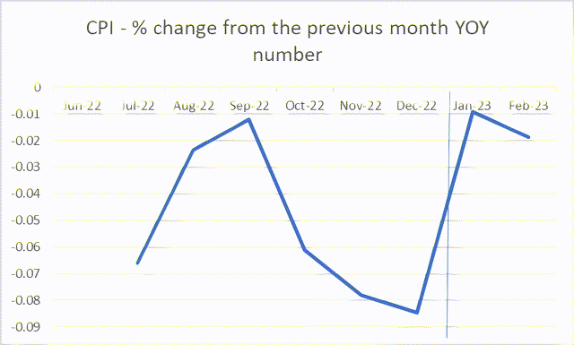 Also, based on Cleveland Fed InflationNowcast, the percentage change in headline CPI from the previous month is expected to significantly slow in January and February., down to 1-2%.